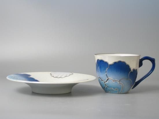 有田焼 虹彩銀箔ルリ牡丹C/S